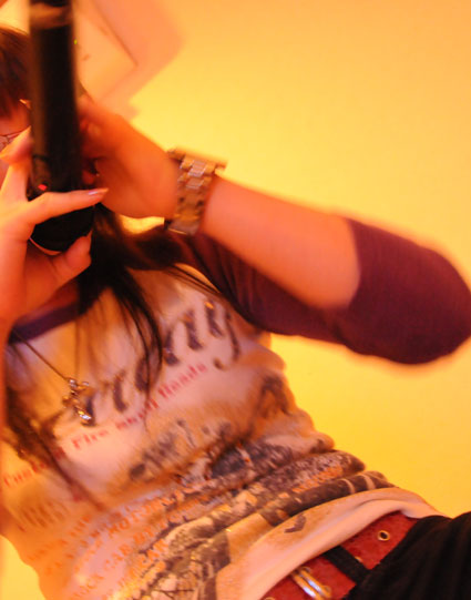 化粧の仕方も教えてもらって、まねてみたら目のサイズが変わりマシタ。(すごいなぁ、化粧って…)