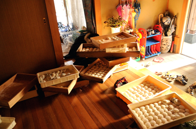 親戚15人ぐらいでお正月用のお餅をひたすらついて丸めマス。